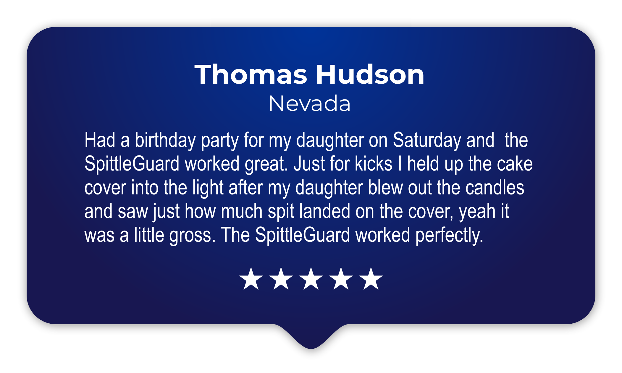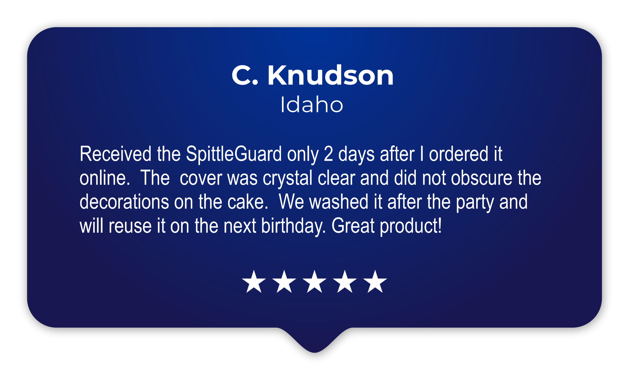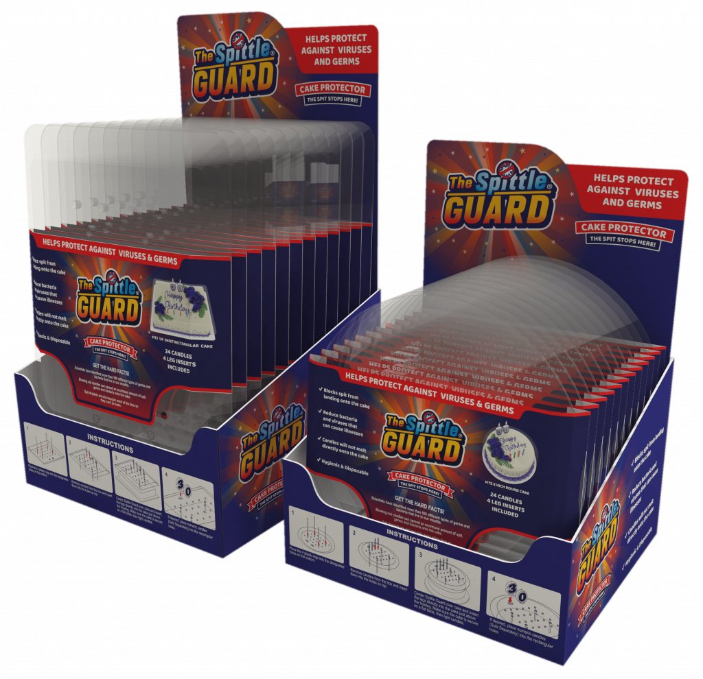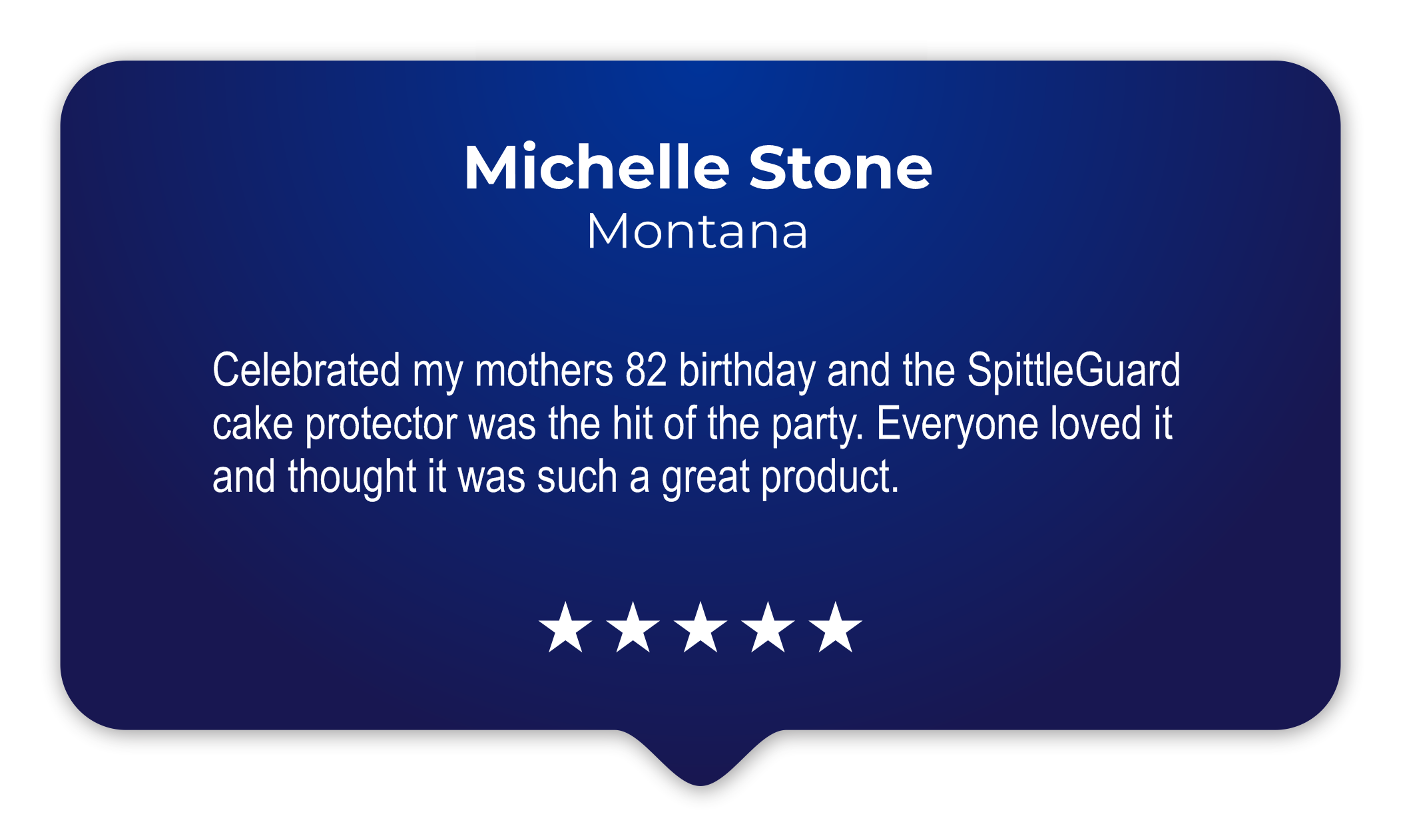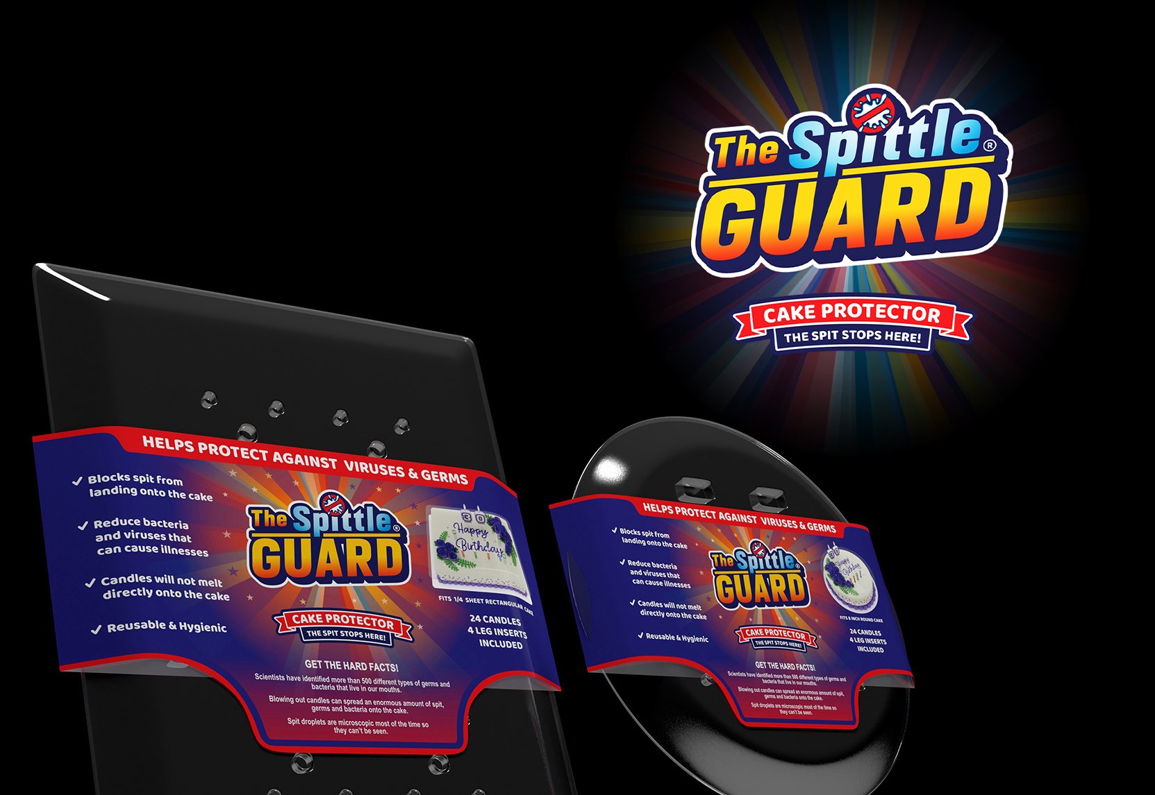Center Spittle Guard over the cake and insert the legs directly into the cake just above the frosting.